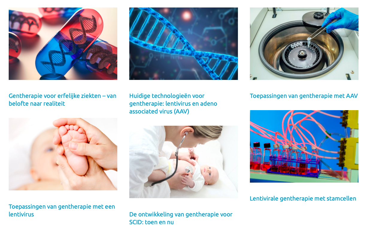 Wil je meer weten over de voor- en nadelen van deze technologie? En wat zijn de behandelmogelijkheden en hoe verloopt het proces richting marktintroductie? Het online dossier gentherapie geeft antwoord op deze vragen. Je vindt er zes uitgebreide artikelen en twee factsheets.