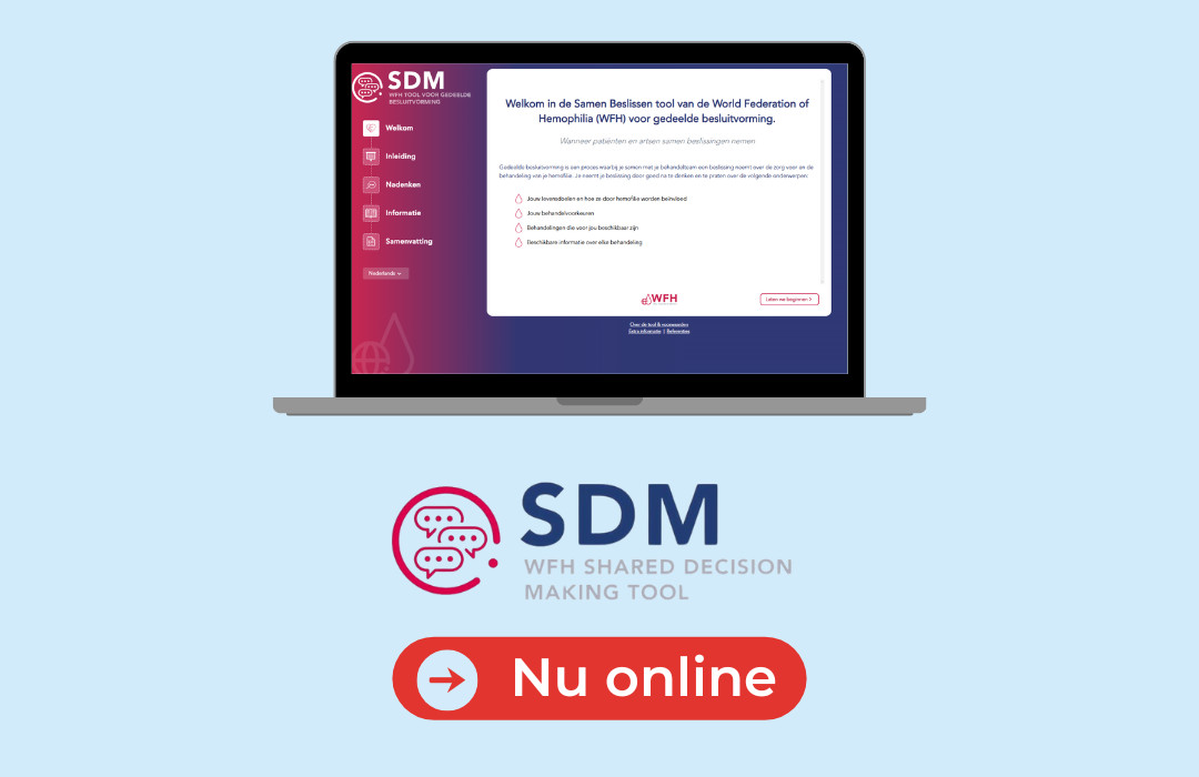 Gedeelde besluitvorming is het proces waarbij je samen met je behandelteam beslissingen neemt over jouw behandeling. Samen een beslissing maken over jouw behandeling is erg belangrijk. Zeker in een tijd waarin er nieuwe producten beschikbaar komen. Daarom is deze tool gemaakt door de Wereldorganisatie (WFH). De tool werd op 1 augustus 2023 gelanceerd als de Shared Decision Making (SDM) tool. Dankzij de NVHP is de tool nu ook beschikbaar in het Nederlands via deze link.