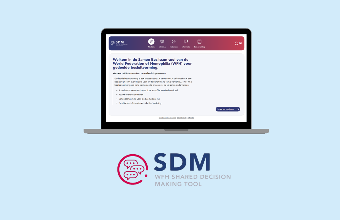 Gedeelde besluitvorming is het proces waarbij je samen met je behandelteam beslissingen neemt over jouw behandeling. Samen een beslissing maken over jouw behandeling is erg belangrijk. Zeker in een tijd waarin er nieuwe producten beschikbaar komen. Daarom is deze tool gemaakt door de Wereldorganisatie (WFH). De tool werd op 1 augustus 2023 gelanceerd als de Shared Decision Making (SDM) tool. Dankzij de NVHP is de tool nu ook beschikbaar in het Nederlands via deze link.