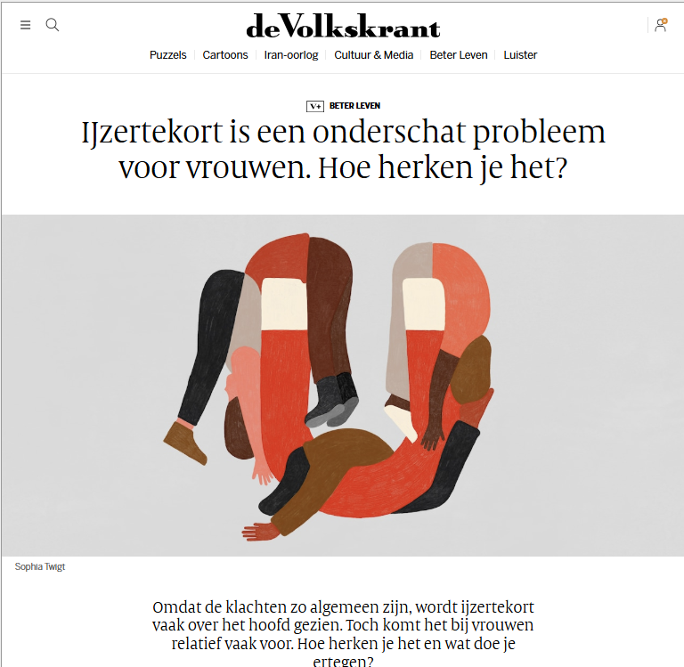 Veel vrouwen lopen rond met een ijzertekort zonder het te weten. Vermoeidheid, duizeligheid of concentratieproblemen? Het wordt nog te vaak onderschat blijkt ook uit dit artikel van de Volkskrant. Van de menstruerende of zwangere vrouwen heeft naar schatting 1 op de 6 een tekort.