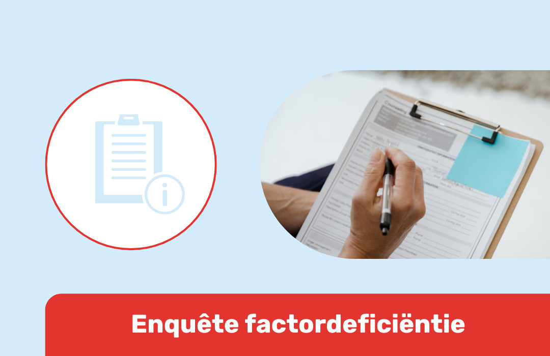 De EAHAD, de internationale vereniging van zorgprofessionals voor mensen met een stollingsstoornis, heeft een enquête ontwikkeld voor mensen met een zeer zeldzame factordeficientië. Heb jij een factor II, V, VII, XI of XIII-deficiëntie? Of een fibrinogeenstoornis? Vul dan de vragenlijst in! Het duurt maximaal 10 minuten.